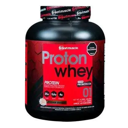 Proton Whey de Smart Muscle es una proteína en polvo que combina suero concentrado y aislado, proporcionando 25 g de proteína por porción junto con BCAA’s, glutamina y 6 mil millones de probióticos (Lactobacillus coagulans) que favorecen la digestión. Es baja en grasas, azúcares y carbohidratos, lo ...
